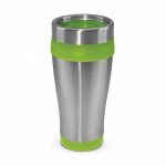 Contoured 350ml double wall travel mug which will keep drinks hot for longer. It has a stainless steel outer wall and a polypropylene inner wall. Aspen has a secure screw on lid with a splash proof sliding closure. It laser engraves to a natural etch and is BPA free. Handwashing is recommended.