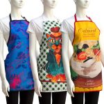 Half length aprons with adjustable strap and metal loop with your logo/design covering the full surface.