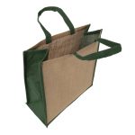 This ethically sourced and handmade jute bag comes with pre-printed black gussets and trim using 100% vegetable based inks. With a handy jute handle and larger size, this carry bag will send a strong environmental message about your brand when combined with your logo.