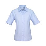 Side panels for better fit with bust darts for added shape 2 Button collar and 2 vertical buttons on cuff Rounded cuff.