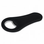 Plastic and metal bottle opener with a strong magnet for storing it on a fridge.