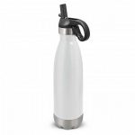 Trendy 700ml stainless steel drink bottle with a timeless design. It has a secure screw on lid which has a flip out drinking valve with a straw and a removable silicone mouth piece. The lid also has a convenient carry handle with a spring loaded carabiner clip. Mirage bottle laser engraves to a shiny steel finish, except for the silver bottle which engraves to a natural etch. Mirage is BPA free and can be presented in an optional black gift box. Handwashing is recommended.