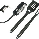 2 piece anodised steel tools and bright fluorescent flexible light. 600d Nylon zipped case.