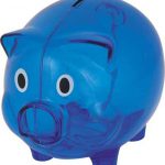 Translucent piggy bank with large branding areas.