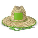 Classic wide brim straw hat with coloured trim. This breathable hat is ideal for summer months and features a large woven polyester patch that provides an affordable and prominent branding opportunity. The hat has an adjustable chin strap with a toggle and metal aglets and is available in three sizes to fit most people.