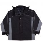 Description: Hideaway hood concealed in collar. Removable vest. Concealed embroidery access. Silver reflective piping.